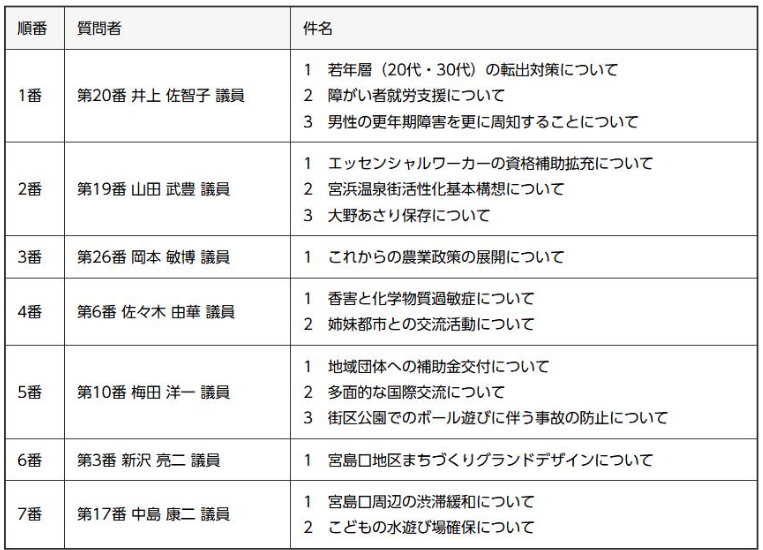 9月議会の一般質問の日程発表!